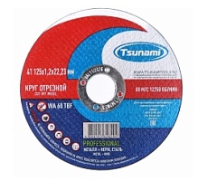 Диски "Цунами" 125х1,0х22мм WA 60 T BF отрезной по металлу+нерж сталь PROFESSIONAL TSUNAMI