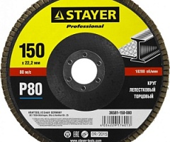 Диск STAYER лепестковый торцевой 150*22 мм, Р80 STAYER закр.