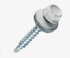Саморез кровельный 4,8*19 шестигран. гол D8 рез.шайба СВЕРЛО оцинк RAL 9003 белый