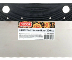 Шпатель 200 мм для нанесения клея зуб А2 1,8*1,5 мм, нерж. сталь DECOR